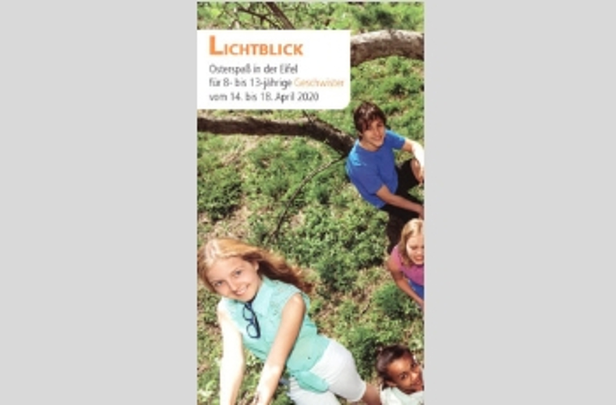 AOK Lichtblick - Osterspaß in der Eifel"Lichtblick" der AOK Rheinland/Hamburg bietet 2020 für Geschwister von schwer und chronisch erkrankten Kindern und Jugendlichen im Alter von 8-13 Jahren Osterspaß in der Eifel an. Mit dem Osterspaß ermöglicht die AOK den Geschwisterkindern fernab vom Alltag, neue Eindrücke und Perspektiven zu gewinnen. Dabei erwartet die Kinder und Jugendlichen auch Abenteuer im Wald, Sport, Action, Spaß, Entspannung und Freiräume. Die gemeinsame Zeit in der Natur soll den Geschwistern auch Raum zum Zusammenwachsen und zum gegenseitigen Austausch bieten.