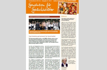 Der neue FamilienBande Newsletter ist da!Themen dieser Ausgabe sind u.a. geförderte Sportaktivitäten in Zusammenarbeit mit dem Geschwisterkinder-Stützpunkt in Niedersachsen sowie die Wunschzettel Aktion des Geschwisterkinder Netzwerks in Kooperation mit Aktion Kindertraum. Außerdem stellen wir Ihnen einen weiteren Preisträger des FamilienBande Förderpreises 2016/2017 in de Kategorie "GeschwisterCLUB" vor und informieren Sie über die neue Zeitschrift "Geschwister Rundschau", die erste Zeitschrift von Geschwistern für Geschwister.
