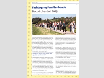 FamilienBande Fachtagung 2015schöner Artikel in Verbandszeitung des Bundesverbands wbs Wir bedanken uns bei Frau Leber für den schönen Artikel über die FamilienBande Fachtagung 2015, der in der Verbandszeitung Wir üBer unS/Umschau 43 des Bundesverbands Williams Beuren Syndrom im Januar 2016 erschienen ist. In dem Artikel beschreibt Frau Leber, die selbst Referentin der Fachtagung war, ihre Eindrücke der zweitätigen Veranstaltung. Hier geht's zum Artikel Hier geht's zur Website des Bundesverbands Williams Beuren Syndrom |
