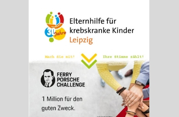 Ihre Stimme für krebskranke Kinder und ihre Familien!Die Elternhilfe für krebskranke Kinder Leipzig wurde mit zwei tollen Projekten für einen Förderpreis der Ferry-Porsche-Stiftung nominiert. Darunter ist auch das Projekt "Gemeinsam stark! - Ambulante Nachsorgeangebote für krebskranke Kinder und ihre Geschwister." Von knapp 600 Einrichtungen haben es die Projekte der Elternhilfe bis zur Online-Abstimmung mit über 70 weiteren Projekten geschafft. Landen die Projekte unter den besten 35, so ist eine Förderung von 5.000 € sicher. Im Finale sind sogar 25.000-100.000 Euro möglich. Unterstützen Sie die Elternhilfe für krebskranke Kinder in Leipzig und somit auch die beiden Projekte mit Ihrer Stimme bei der Online-Abstimmung. Jede Stimme zählt! Das Voting endet am 21.02.2020. Weitere Informationen |