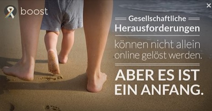 Unterstützen Sie mit jedem Online-Einkaufdie Stiftung FamilienBande Machen Sie aus jedem Online-Einkauf eine gute Tat und unterstützen Sie die Stiftung FamilienBande – und das ohne einen Cent mehr zu bezahlen! Und so funktionierts: Gehen Sie auf http://www.boost-project.com/www.boost-project.com, wählen Sie aus über 500 Partnershops (z.B. amazon, expedia, Deutsche Bahn und viele mehr) ihren Shop aus und kaufen Sie dort ganz gewöhnlich ein. Für ihren Einkauf zahlen die Shops eine Dankesprämie, die wenige Tage später auf ihrem boost-konto gutgeschrieben wird. Damit können Sie dann ein soziales Projekt unterstützen, zum Beispiel die Stiftung FamilienBande :-) Noch einfacher geht’s mit der boost-bar, einem Browser Add-on, das Sie vor jedem Einkauf an boost erinnert. Wir freuen uns auf Ihre Unterstützung! |