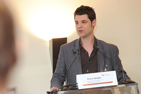 Thore Spilger, Institut für Sozialmedizin in der Pädiatrie Augsburg (ISPA), Bunter Kreis, beschäftigte sich in seinem Vortrag mit den wichtigsten Ergebnissen eines Dokumentationsschemas, mit dem sich erstmalig zentrale Inhalte von Angeboten für Geschwisterkinder erfassen lassen. Anhand von praktischen Beispielen wurde gezeigt, wie sich Angebote von Beginn an aufbauen und dokumentieren lassen. Die theoretische Einbettung der praktischen Erkenntnisse in ein wissenschaftliches Wirkmodell rundete den Vortrag ab. |