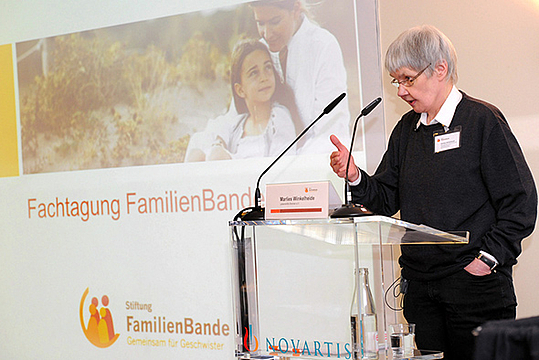 Zum Auftakt der Tagung begrüßten Herlinde Schneider, Vorstand Novartis Stiftung FamilienBande, und Irene von Drigalski, Geschäftsführung Novartis Stiftung FamilienBande, die zahlreichen Teilnehmer der FamilienBande Fachtagung 2013. Darunter befanden sich einige bekannte Gesichter – solche, die die Fachtagung von Beginn an besuchten und damit unterstützten. Dieses kontinuierliche Engagement trage laut Herlinde Schneider nicht zuletzt dazu bei, dass sich die FamilienBande Fachtagung zu einem festen Bestandteil der theoretischen und praktischen Diskussion über die Geschwisterkinderbegleitung entwickelt habe. |