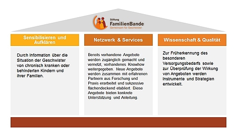 Hilfe für GeschwisterkinderEs besteht in Deutschland bereits ein vielfältiges Angebot für Geschwisterkinder bzw. deren Familien, die von unterschiedlichen sozialen Einrichtungen oder Selbsthilfegruppen angeboten werden. Derzeit ist es möglich, bundesweit zwischen mehr als 300 Angeboten zu wählen, deren inhaltliche Spannbreite groß ist: Sie reicht von Aufklärung und Beratung über Betreuung/Entlastung bis hin zu Erlebnispädagogik und Selbsterfahrung. Die Kosten für viele dieser Angebote werden heute bereits von Krankenkassen bezuschusst oder sogar ganz übernommen. Um den Zugang zu diesen Angeboten zu erleichtern, hat FamilienBande mit der Angebots-Suche ein Werkzeug entwickelt, das das Auffinden von wohnortnahen Angeboten für Geschwisterkinder und ihre Familien vereinfacht. Auf unserer Homepage können so bedarfsgerechte Hilfen für Geschwister und ihre Familien beispielsweise durch Eingabe der Postleitzahl einfach gefunden werden. Die Stiftung FamilienBande hat sich zum Ziel gesetzt, dass jedes Geschwisterkind bei Bedarf in seiner Nähe ein passendes Angebot finden kann. Fortbildung zur Fachkraft für GeschwisterMit Unterstützung der Stiftung FamilienBande, hat das Institut für Sozialmedizin in der Pädiatrie Augsburg (ISPA) zusammen mit Praktikern aus dem Sozialverband VdK Bayern und der Bildungs- und Erholungsstätte Langau ein Fortbildungskonzept für Fachkräfte aus dem Sozial- und Gesundheitswesen entwickelt – den Kurs "Fachkraft für Geschwister". Als Teilnehmerinnen und Teilnehmer haben Sie die Möglichkeit, eigene Erfahrungen einzubringen und zu reflektieren. Außerdem erhalten Sie hilfreiches Handwerkzeug für den Aufbau von Angeboten für Geschwister. Im Kurs erhalten die Teilnehmerinnen und Teilnehmer zudem die Kursleitungs-Qualifikationen für die GeschwisterCLUB-Präventionskurse. Zum Kurs „Fachkraft für Geschwister“